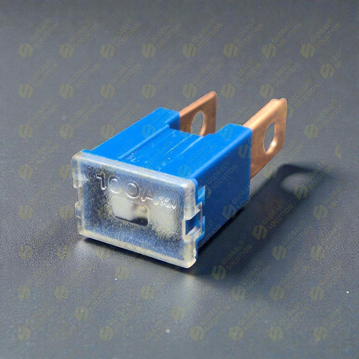 Синій колір корпусу відповідає стандартизованому маркуванню запобіжників номіналом 100А згідно ISO 8820-3. Колірне кодування дозволяє технічному персоналу швидко ідентифікувати номінал без демонтажу елемента з блоку.