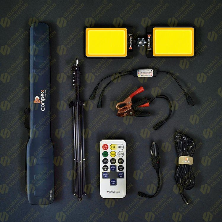 СТО, Автосервіс та Гараж: Регульований штатив дозволяє встановити прожектор на потрібній висоті для освітлення автомобіля зверху, знизу або збоку. Дві незалежні голівки можна спрямувати в різні сторони, освітлюючи одночасно кілька зон. Підключили до акумулятора — і працюєте навіть при відсутності електрики. Міцна конструкція витримує умови автомайстерні.