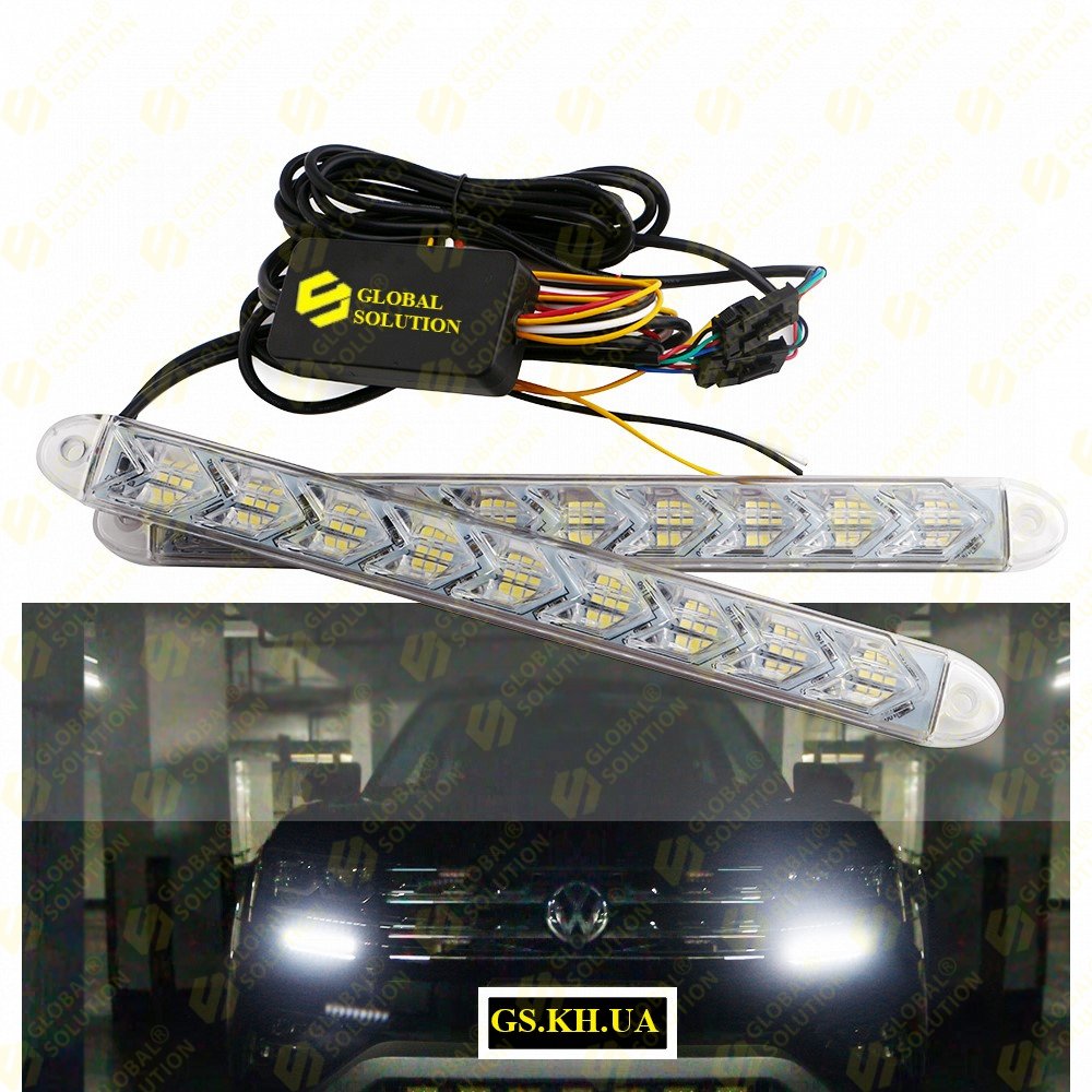 Дневные ходовые огни GS 3030-9SMD 9-14V Белый/Желтый IP68 (Белый Корпус 25*2,4*1,5)